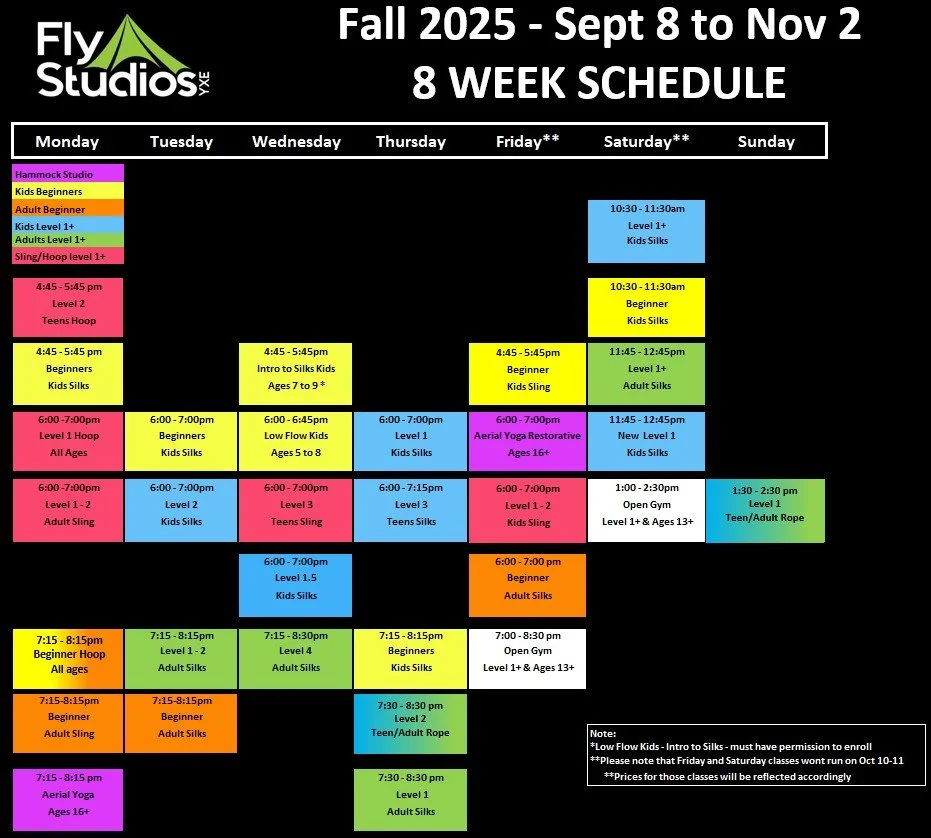 Fall Schedule begins September 8 - Registration is OPEN!